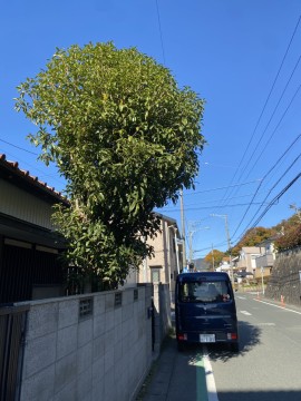 11/29、豊川市にて、立木伐採作業をしました。道路にはみ出していたので伐採することにしました。